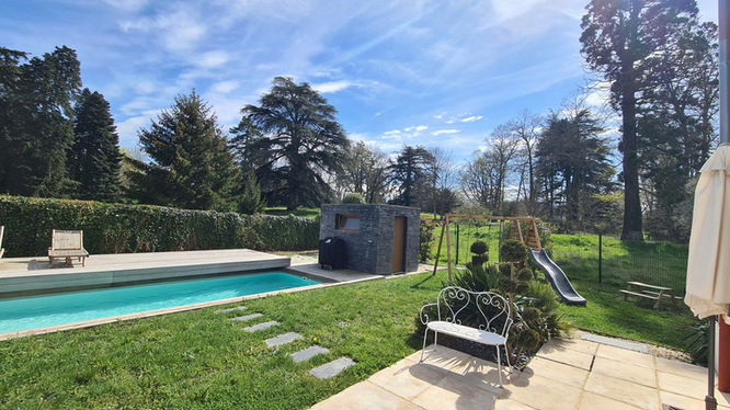 Au coeur d'un écrin de verdure, cette propriété vous offre un jardin privatif de 500 m² avec une piscine, promettant des moments de détente inoubliables.